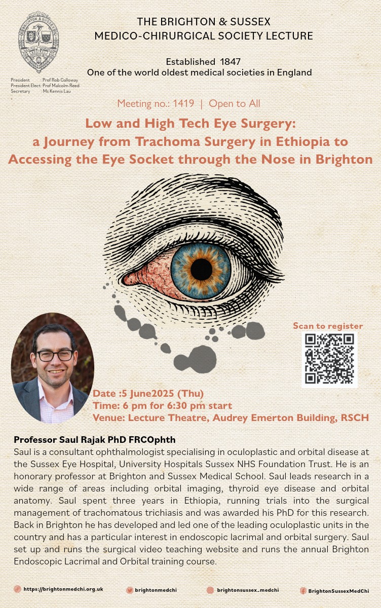 Low and high tech eye surgery: a journey from trachoma surgery in Ethiopia to accessing the eye socket through the nose in Brighton |